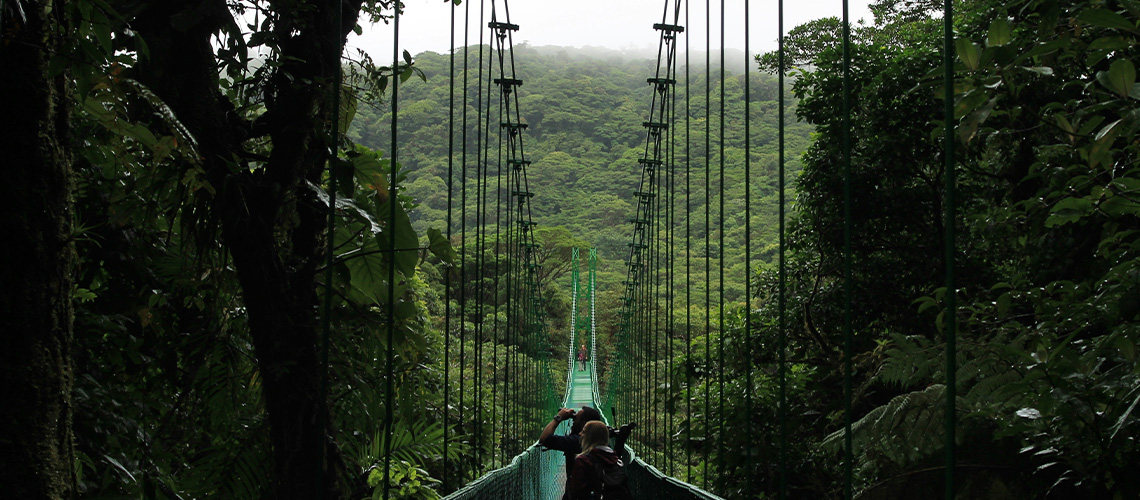 Der Nebelwald von Monteverde gilt zurecht als eine der Top-Sehenswürdigkeiten von Costa Rica. Der dichte Regenwald strotzt geradezu von einer einzigartigen Artenvielfalt. Dank markierten Wanderwegen können Sie die Natur Costa Ricas hier hautnah erleben. Ihr Weg führt Sie dabei durch das dichte Blätterdach des Regenwalds, vorbei an riesigen Farnen und über Hängebrücken, die einzigartige Panoramen eröffnen. Ihre Fotokamera sollten Sie immer am Anschlag halten, denn unterwegs geraten Ihnen garantiert so einige Tiere vor die Linse. Unter anderem können Sie Faultiere, Kolibris, bunte Baumfrösche und (mit viel Glück) sogar Jaguare erspähen.