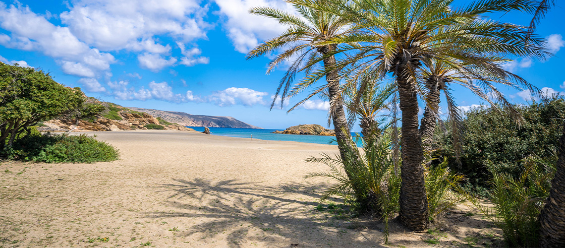 Davon dass Kreta so manche echte Traumstrände zu bieten hat, können Sie sich auf Ihrer nächsten Etappe überzeugen. Und das nicht nur am Stadtstrand von Sitia. Das Hafenstädtchen eignet sich hervorragend, um im Rahmen von kurzen Roadtrips die Strände in der Region zu erkunden. Immerhin befinden sich hier im Osten der Insel einige der schönsten Strände Kretas. Unter anderem der Palmenstrand von Vai. Der von kretischen Dattelpalmen gesäumte Sandstrand liegt direkt am größten natürlichen Palmenhain Europas. Wer es ruhiger mag: Nördlich des Palmenstrands befinden sich noch zahlreiche weitere schöne Strände, die von deutlich weniger Touristen besucht werden – z.B. Erimoupolis Beach. Vor Ort befindet sich ein Parkplatz, von dem aus Sie den Strand in wenigen Minuten zu Fuß erreichen.