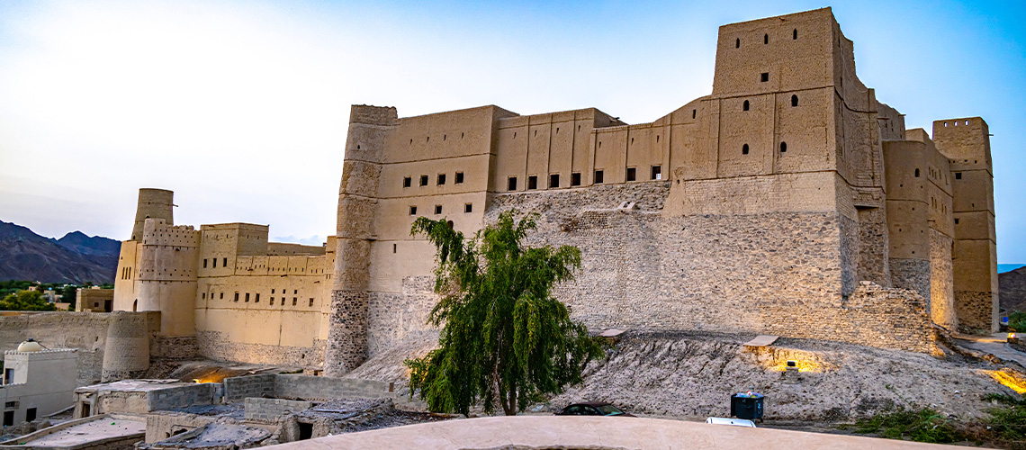 Nach rund drei Stunden Fahrt durch die karge, teils von majestätischen Bergen geprägte Wüstenlandschaft erreichen Sie schließlich Bahla. Die Oasenstadt gehört zu den ältesten Königsstädten des Landes – und wirkt auf Besucher wie ein Märchen aus 1001 Nacht. Ausgedehnte Palmenhaine und Dattelgärten verleihen der Stadt zusammen mit den in der Sonne leuchtenden Lehmgebäuden das Aussehen einer echten Oase. Die 12 Kilometer lange Stadtmauer aus Lehmziegeln sowie die majestätische, ebenfalls aus Lehm errichtete Festung Hisn Tamah haben Bahla den inoffiziellen Beinamen „Lehm-Stadt“ eingebracht.