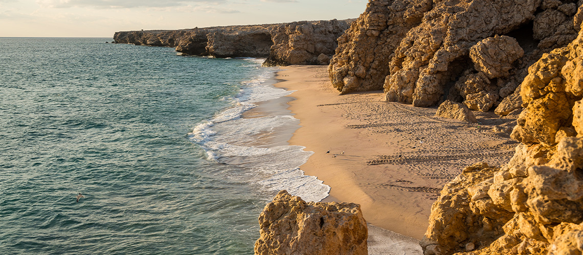 Von Maskat geht es los zum ersten längeren Roadtrip Ihrer Reise. Nach einem Abstecher zum Bimmah Sinkhole – eine Sinkhöhle, gefüllt mit türkisfarbenem glasklarem Meerwasser, in dem gebadet werden kann – geht es die Küste des Golfs von Oman entlang bis in den Osten des Landes. Ihr Ziel: Ras al Jinz. Berühmt ist der kleine Ort für seinen Strand. Allerdings nicht bei Sonnenliebhabern, sondern bei Naturfreunden. Denn hier, am Turtle Beach, kommen das ganze Jahr über Meeresschildkröten an Land, um ihre Eier im Sand abzulegen. Sogar frisch geschlüpfte Baby-Schildkröten auf dem Weg zum Meer können Sie beobachten – ein zuckersüßer Anblick.