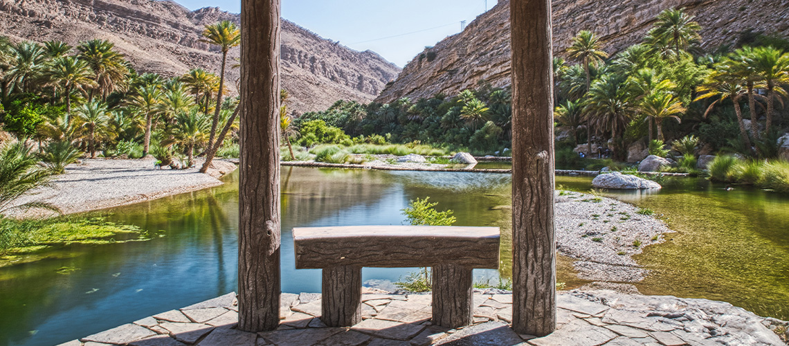 Zu den charakteristischen Naturhighlights des Omans gehören die sogenannten Wadis. Die grünen, oft dicht bewachsenen Flusstäler fällen sich nach Regenfällen schlagartig mit Wasser und sind die restliche Zeit des Jahres größtenteils ausgetrocknet. Immer wieder bleiben allerdings kleine Süßwasser-Seen zwischen den – teils spektakulär tiefen – Canyons zurück, die zum Baden einladen. Zu den schönsten Wadis gehört das Wadi Bani Khalid. Die Wanderwege durch den Canyon führen Sie an palmengesäumten Süßwasserpools, kleinen Wasserfällen und Höhlen vorbei.