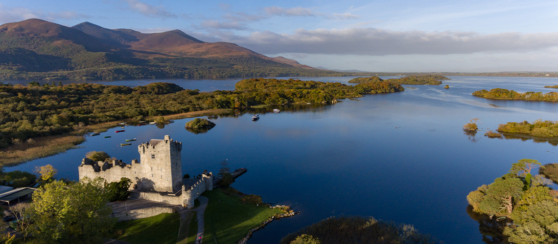 Wandern Sie einige Stündchen über von märchenhaften Burgruinen besetzte grüne Hügel bis ans Ufer eines kristallklaren Sees. Spazieren Sie durch charmante Städtchen und trinken Sie ein Guinness in einem der vielen gemütlichen Pubs. Nehmen Sie den Umweg zum nächsten Aussichtspunkt – und lassen Sie sich von einem Panoramablick beeindrucken, der Ihre kühnsten Erwartungen noch sprengt.